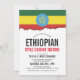 An Ethiopian flag-themed white invitation card for your next theme event. A great item to use for an Ethiopian food cuisine event, or barbecue.