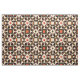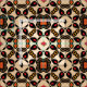 Elegant and trendy fabric design featuring a seamless geometric pattern in ethnic style in beige, red, orange, brown and black.
