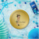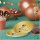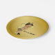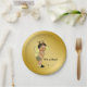 Bee baby shower paper plates with adorable Ethnic baby boy wearing a cute bumble bee outfit on a rich gold background with flying bumble bees. You can add text to personalise these black and gold bee baby shower paper plates, and you can remove the gold background to add the colour of your choice.