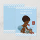 Elegant custom personalised vintage ethnic baby shower thank you card template for African American baby boys with a beautiful vintage illustration of a cute and adorable baby boy with stylish blue diaper. He is ringing you on an old red retro telephone to say thank you. He is holding a little blue suitcase and his quirky teddy bear is leaning against it - he's all packed up and ready for his arrival! The background is a pretty blue with a classy, modern, contemporary blue chevrons border. Chic, trendy, fun, fashionable, funny, amusing, humourous, whimsical, affordable personalised / personalised custom baby boy shower thank yous templates. Decorated on both sides. The back / reverse side has the same design. Double sided printing / front and back. You can hand write your message on the back. If you need any assistance customising your product please contact me through my store and I will be happy to help. PLEASE NOTE:- All invitations on Zazzle have flat printed images.