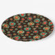 Seamless pattern of gold and brass, ethnic brooches decorated with carnelian, turquoise and jasper on brown background. Ethnic jewellery.