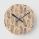 Ethnic Feather Outline Pattern Round Clock