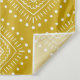 Rich ornamentation: ethnic geometry in golden yellow and white.