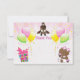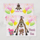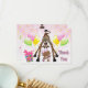 Cute African American girl baby shower thank you notes. Fun, happy, whimsical cartoon giraffe with his head down looking between his legs at a pretty ethnic baby girl holding pink cupcakes. Next to them is a colourful gift box with ribbon. The background is a beautiful bright and cheerful pink burst with colourful balloons and streamers. These stylish, fashionable thank you notes are decorated both sides. Trendy, girly, modern, whimsical thank yous for ethnic girl showers. PLEASE NOTE: All invitations on Zazzle have flat printed images. Text, font and colour of font are personalizable / customisable on the back of the invitations, text on the front is fixed. If you need assistance customising your product please contact me through my store and I will be happy to help. Some elements purchased from resaleclipart.com.