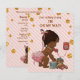 Ethnic Girl On Phone Stripes Gold Dots Baby Shower Invitation