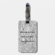 This was purchased as part of a 40th Birthday present for my nephew who is going to Vegas. It is made of high quality, very study and we decided only to put his name on the back of the tag, but you can add a full address if you so wish.