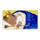 Ethnic prince baby shower water bottle labels with sleeping African American prince baby boy wrapped in a royal blue blanket wearing an elegant gold crown and pearl bracelet holding a royal gold sceptre on a rich gold background. These prince baby shower water bottle labels can be customised with text in the font style of your choice. You can remove the gold background and add the colour of your choice. These baby shower water bottle labels are not waterproof.