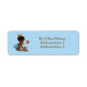Elegant custom personalised vintage ethnic prince baby shower return address labels template for African American baby boys with a beautiful vintage illustration of a cute and adorable baby boy with stylish blue diaper and gold crown. He is talking on an old red retro telephone telling you that he is on his way! He is holding a little blue suitcase and his quirky teddy bear is leaning against it - he's all packed up and ready for his arrival! The background is blue with grey customisable text. Chic, trendy, fun, fashionable, funny, amusing, humourous, whimsical, affordable personalised / personalised custom baby boy shower return address label templates. If you need any assistance customising your product please contact me through my store and I will be happy to help.