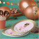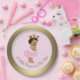 Pink and gold princess tutu baby shower paper plates with adorable ethnic princess baby girl wearing a tutu and string of pearls on a pink and gold background. These cute ballerina princess baby shower paper plates can be customised with text in the font style and colour of your choice. You can also remove the pink layer for white.