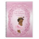 Elegant pink vintage ethnic princess tutu cute baby shower custom personalised guestbook notebook template with a beautiful vintage illustration of a cute and adorable African American baby girl with stylish pink Princess crown, ballerina tutu and a pink bow in her hair on a pretty pink background with a classy, ornate swirls and flourishes border. Chic, trendy, glamourous, girly, feminine, fun, fashionable personalised girl Baby Shower guest book for your Princess themed showers. I have matching invites and other products in my store. If you need any assistance customising your product please contact me through my store and I will be happy to help. The beautiful frame is original artwork©delightful-doodles.com.