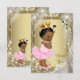 Girl baby shower thank you card with elegant gold background and adorable ethnic ballerina tutu princess baby girl wearing pretty pink tutu, gold crown and string of pearls. This cute pink flat style princess tutu baby shower thank you card is easily customised by adding your message in the font style, font size & colour, and wording of your choice, or leave blank to add your handwritten message after they arrive. You can remove the gold layer to add your own background colour. This is a printed design with no real jewels, glitter, etc.