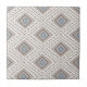Ethnic Tile Pattern Print, blue, ecru, brown tile