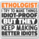 Funny Ethologist Sayings "Ethologist I Try To Make Things Idiot Proof But They Keep Making Better Idiots". Grab this Funny Ethologist design as a funny gifts for an awesome mum, dad or friend.