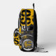 Main Color: The body of the bag is primarily a matte and robust black, serving as a resistant canvas for wear and tear.