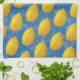 Happy Sukkot! A touch of playfulness for your kitchen featuring etrogs on a towel with deep blue tufa backgound.