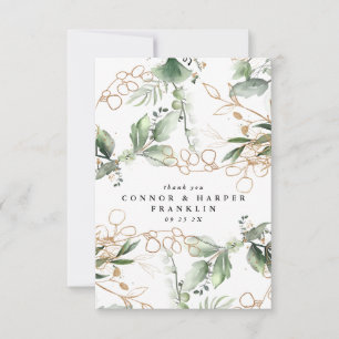Elegant Eucalyptus Leaves Greenery Gold Wedding Thank You Card
