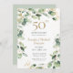 This exquisite, watercolor eucalyptus with gold leaf embellishments and gold splattered dots 50th anniversary party invitation is perfect for big celebration. It's soft flowy design is modern yet traditional. Select Personalise this template to make it uniquely your own. In seconds you will see your stunning anniversary party invitations.