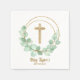 A gold faux glitter cross and eucalyptus leaves wreath highlight these napkins with your personalization in chic lettering. Perfect for your child's baptism, christening or first communion. MATCHING items available in our store.