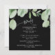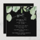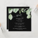 Eucalyptus Bridal Shower Invitation. Black Background. Square.