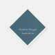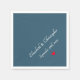 Create your own custom, personalised, elegant white typography / calligraphy / script / font on eucalyptus blue colour background, bride groom / couple names, wedding / anniversary date, red heart, your choice of white or ecru coloured, coined or standard style, food contact safe, party celebration cocktail luncheon dinner paper napkins that look good tucked in the collar or draped over your lap. Simply type in the bride and groom's or wife and husband's names, and the wedding date, to customise. Elegant, classy paper napkins, perfect for wedding reception, anniversary celebrations, engagement party, and more.