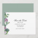 Modern Eucalyptus Botanical Script Save the Date card. Featuring purple and green foliage with script typography.