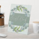 Wedding sign for the guest book table. The botanical design has blue-grey eucalyptus leaves. A swag of greenery at the top and bottom with a pale green panel in the centre for text. The watercolor leaves work for a rustic or nature themed wedding ceremony. This is one of many sizes to choose from.