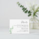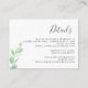 A simple wedding invitation details enclosure card, to compliment your autumn wedding invitation suite. This design features a watercolor eucalyptus branch with a headline in hand lettered style font and your details in sans serif font.