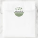 This elegant round sticker showcases a beautiful eucalyptus branch intertwined with lush greenery and delicate white flowers at the top. The addition of sage green at the bottom brings a touch of sophistication to the entire design, perfectly harmonising with the striking typography of the minimalistic text, resulting in a modern and stylish aesthetic that is sure to impress your guests.