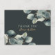 Show your appreciation with this sophisticated thank you card, featuring elegant eucalyptus branches and lush green leaves highlighted by subtle gold accents. The deep charcoal background and gentle watercolor style frame your message in a botanical, garden inspired design, while the mix of classic and script fonts adds a refined touch. Ideal for weddings, garden parties, or any occasion that calls for an elevated sense of gratitude, this card blends modern luxury with nature’s beauty for an unforgettable impression.