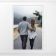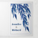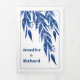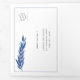 Eucalyptus branch in blue colour trifold wedding invitation. A lovely design for your winter wedding. The cover features cascading branches of eucalyptus leaves and the names of the couple. The inside panels include details of your wedding and RSVP which can be detached. There is a photo of the couple on the outside back.