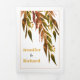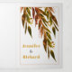 Eucalyptus branch in fall colours autumn trifold wedding invitation. A lovely design for your fall wedding. The cover features cascading branches of eucalyptus leaves and the names of the couple. The inside panels include details of your wedding and RSVP which can be detached. There is a photo of the couple on the outside back.