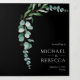 Eucalyptus Branch Photo QR Code Black Wedding Tri-Fold Invitation