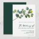 Celebrate your upcoming wedding with this beautiful card featuring a watercolor eucalyptus branch. The soft green tones of the eucalyptus leaves create a serene, natural atmosphere, perfect for nature-themed, outdoor, or garden weddings. The minimalist design keeps the focus on the elegant botanical illustration, while the ample white space ensures your wedding details remain clear and easy to read. A wonderful choice for couples looking for a fresh, stylish, and modern way to announce their special day.