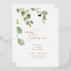 Gold and watercolor eucalyptus. Gold text bridal shower invitation. Gold foil.