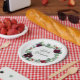 Eucalyptus greenery and burgundy red flowers wedding paper plates