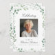 This Celebration of Life funeral invitation combines elegance and warmth with a soft eucalyptus wreath framing a treasured photo. Designed in calming green tones, it offers a serene and modern way to honour the memory of a loved one.
