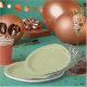 With a colour palette from ivory to spring green and dark moss, this wedding collection features a handwritten script font and eucalyptus leaf accents to add that wonderful modern touch. The coordinating paper plate shown here has all the above with a striking two-toned green background and border of eucalyptus. Add your names and wedding date using the provided template. Search ID901 to see other colour choices and coordinating pieces for this unique wedding collection.