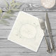 With a colour palette from ivory to spring green and dark moss, this wedding collection features a handwritten script font and eucalyptus leaf accents to add that wonderful modern touch. The coordinating paper napkin shown here has all the above with a striking wreath design in ivory and light sage. Add your names and wedding date using the provided template. Search ID901 to see other colour choices and coordinating pieces for this unique wedding collection.