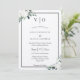 This eucalyptus cotton felt ecru monogram wedding invitation is perfect for your modern wedding. This design features eucalyptus greenery with white cotton fluffs on an off white and navy background and black calligraphy script with a black border in a modern classic traditional layout. Please feel free to reach out to us with any questions about this design.