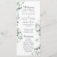 This eucalyptus cotton white modern flat program is perfect for your modern wedding. This design features eucalyptus greenery with white cotton fluffs on a white and navy background and black calligraphy script in a modern classic traditional layout. Please feel free to reach out to us with any questions about this design.