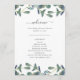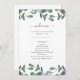 This simple and elegant wedding welcome program features green watercolor eucalyptus leaves on a clean white background with trendy handwritten script.