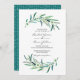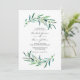 Gorgeous green watercolor Eucalyptus leaves and floral wreath decorate this simple and elegant Wedding invitation.