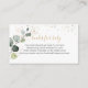 Eucalyptus Foliage and golden leaves gender neutral Baby Shower Books for Baby card. On the top of the card - greenish and golden effect confetti.