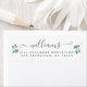 Chic, modern and simple family name return address label features your last name in off-black elegant handwritten script calligraphy on a white background with a stylish touch of green eucalyptus foliage. Simply add your name and address. Exclusively designed for you by Happy Dolphin Studio. If you need any help or matching products please contact us through our store chat!