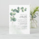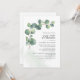 Modern Gender Neutral Eucalyptus Baby Shower Invitation on a blush background and trendy typography. A great choice for gender neutral green themed upcoming baby shower.