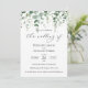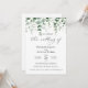 This design features a watercolor illustration of eucalyptus leaves with greenish and golden effect confetti on the top.