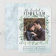 This elegant eucalyptus photo engagement card is perfect to let your family and friends know the happy news before you have a wedding date set. Watercolor greenery eucalyptus sprigs frame the photo, with a dusty blue watercolor background texture, and the announcement “We decided on FOREVER” along with the couple’s names and date and place of engagement. The back has dusty blue marble.