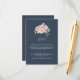 This eucalyptus garden rose floral hotel enclosure card is perfect for a rustic wedding. The design features pink, blush, yellow rose flowers with eucalyptus leaves in a dark navy blue background.