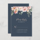 These eucalyptus garden rose floral RSVP cards are perfect for a rustic wedding. The design features pink, blush, yellow rose flowers with eucalyptus leaves in a dark navy blue background.