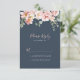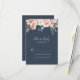 These eucalyptus garden rose floral RSVP cards are perfect for a rustic wedding. The design features pink, blush, yellow rose flowers with eucalyptus leaves in a dark navy blue background.
